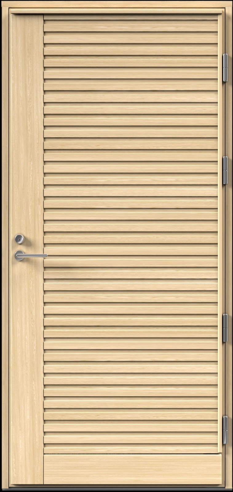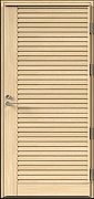 - Дверное полотно многослойной конструкции с утеплителем из древесноволокнистой плиты Ekovilla и поверхностями из панелей бессучковой сосны, покрытых морилкой.