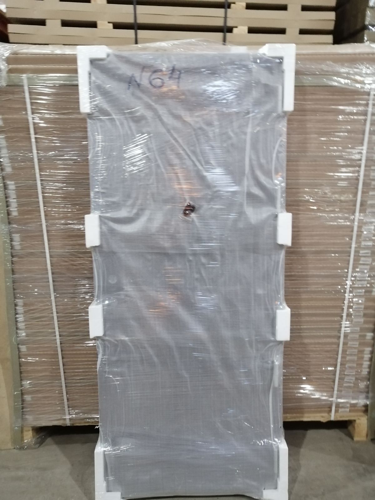 Поверхность двери - плиты HDF, армированные алюминием. Обвязка дверного полотна - комбинация LVL-бруса и массива.