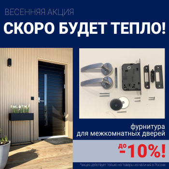 Скидка действует при покупке со склада дверей российского или финского производства и одновременной покупке фурнитуры Abloy или NFD из наличия на складе.